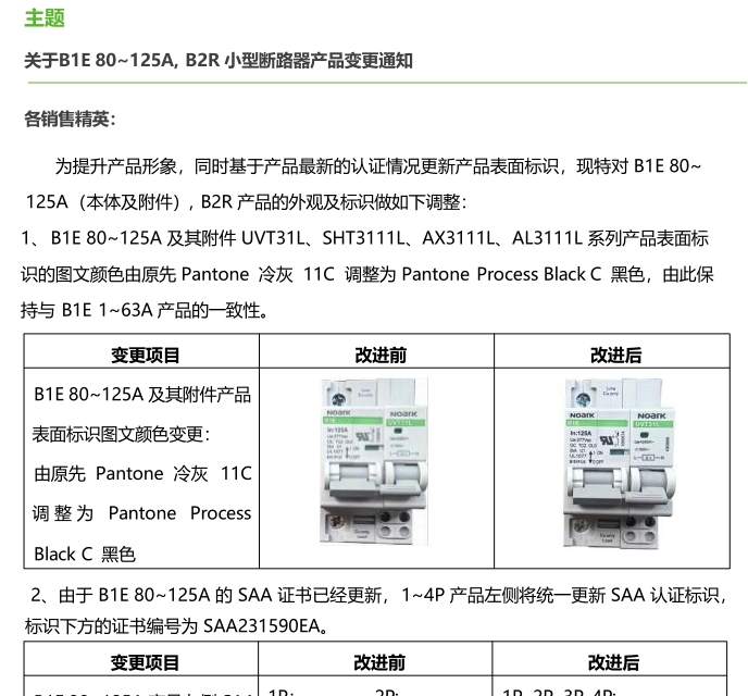 關(guān)于B1E 80~125A, B2R 小型斷路器產(chǎn)品變更通知