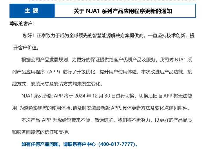 關(guān)于 NJA1 系列產(chǎn)品應(yīng)用程序更新的通知