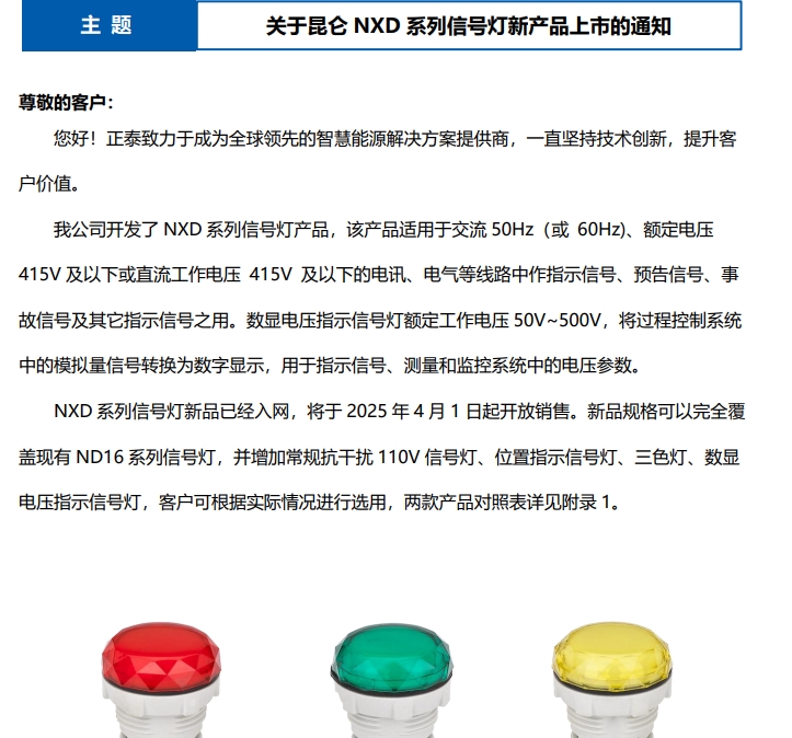 關于昆侖 NXD 系列信號燈新產(chǎn)品上市的通知