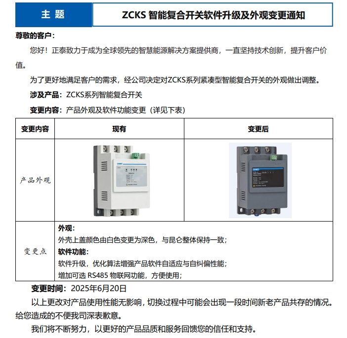 ZCKS 智能復(fù)合開(kāi)關(guān)軟件升級(jí)及外觀(guān)變更通知