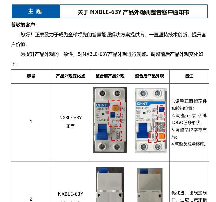 關(guān)于 NXBLE-63Y 產(chǎn)品外觀調(diào)整告客戶通知書(shū)