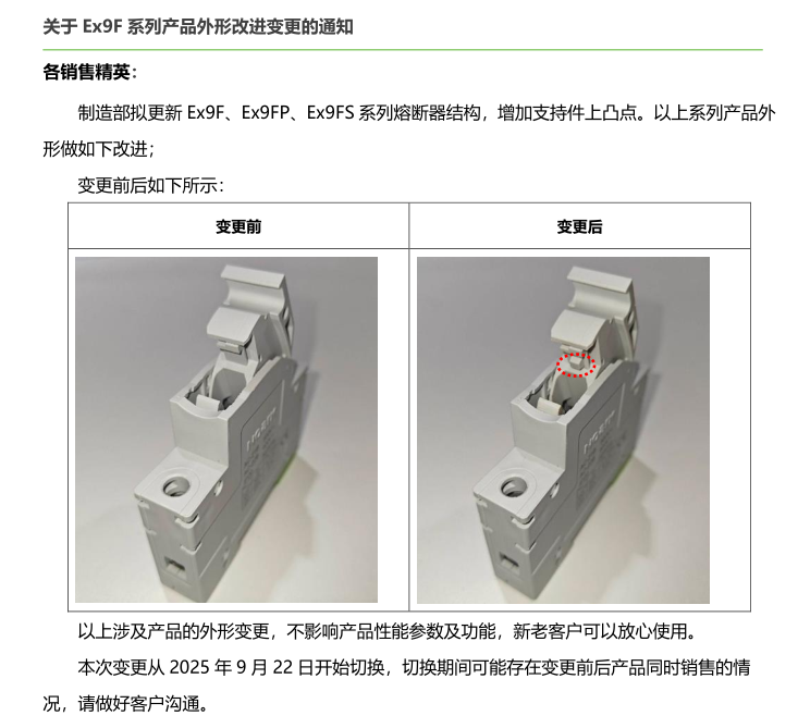 關(guān)于 Ex9F 系列產(chǎn)品外形改進變更的通知